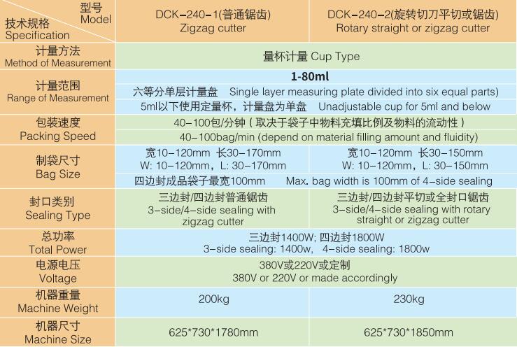 DCK-240-1/DCK240-2 平三邊封/四邊封顆粒包裝機