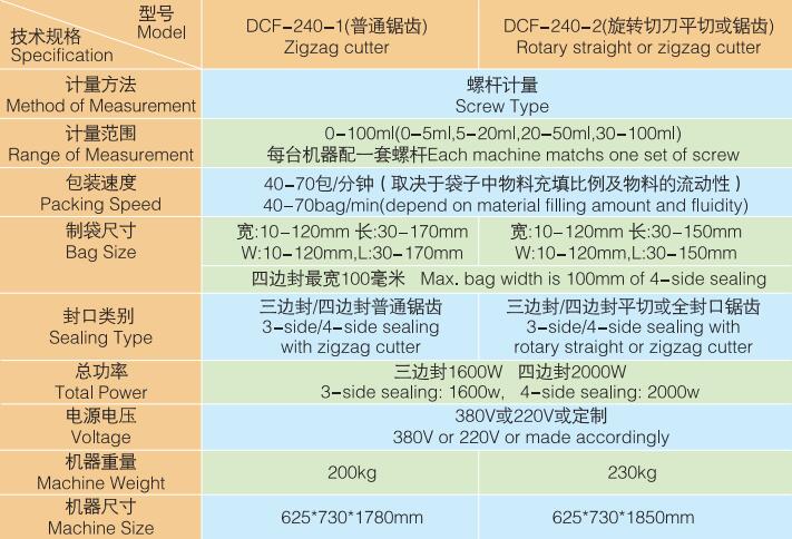 DCF-240-1/DCF240-2 平三邊封/四邊封粉末包裝機
